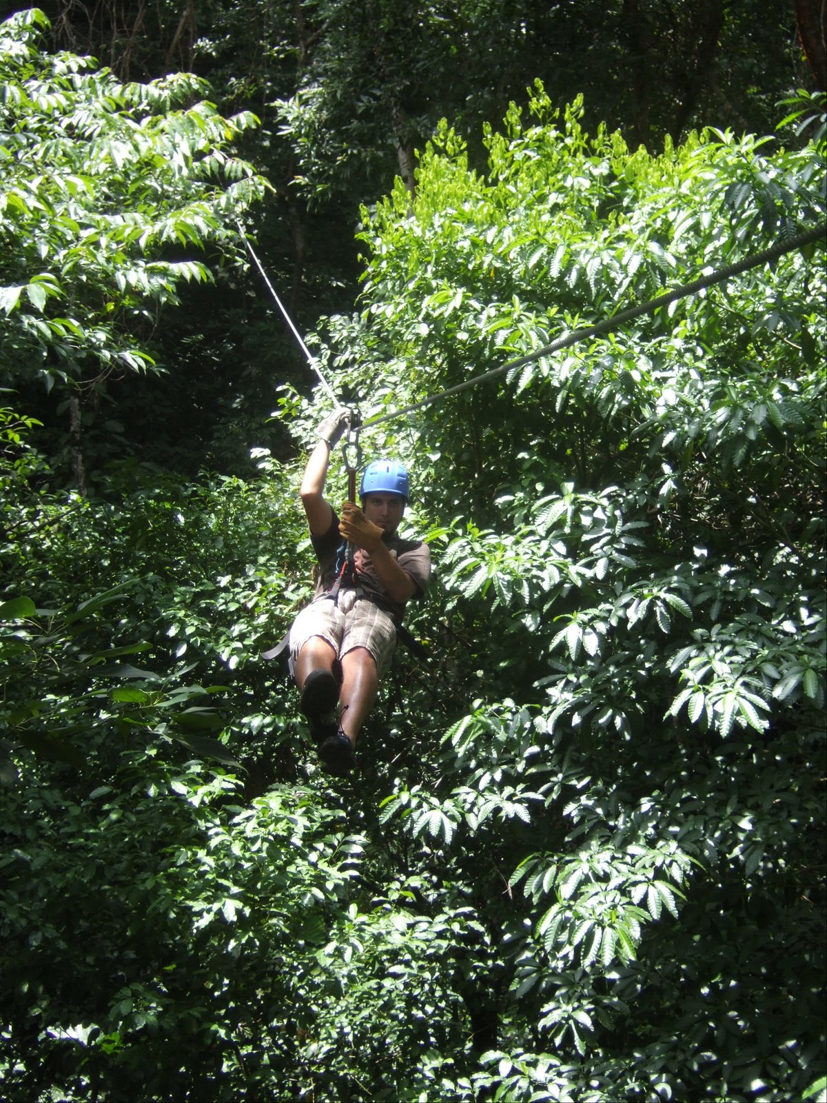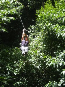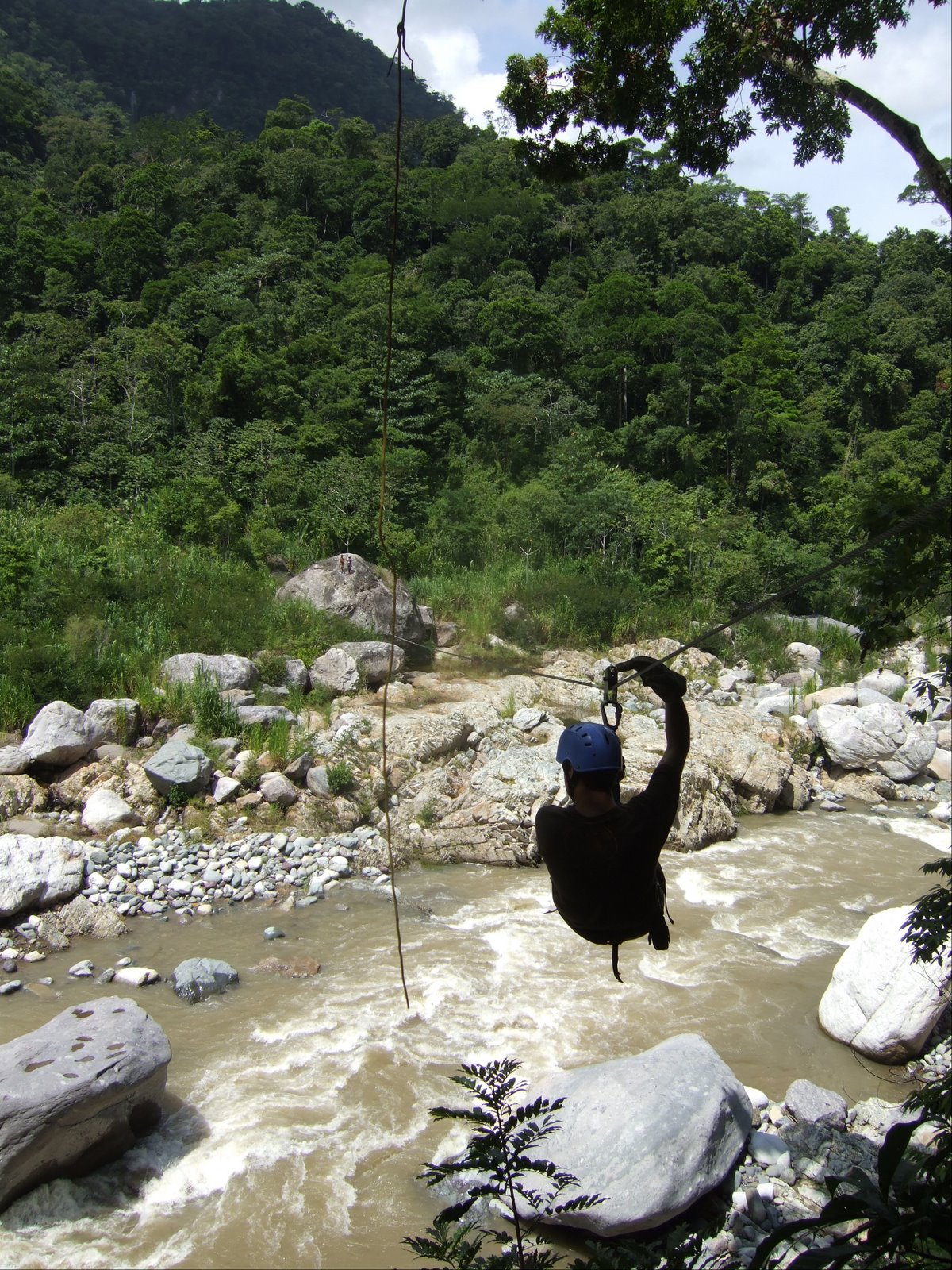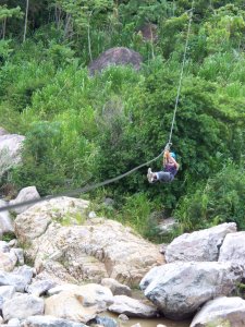 Two of the longest zip lines went across the river. The guide on the opposite end would jump up and down with the cable to throw you around!