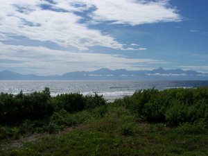 Due to a stuffy nose I didn’t do any diving over the weekend. While everyone else was underwater, I sat on the porch at our hotel and read a book. This is the view I had…the mountains are on the mainland.