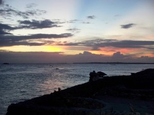 Me, Jenna, and Kim at the beach. The water is warm here with a sandy bottom. We snorkeled for awhile and saw lots of different types of fish, a giant starfish, and some kind of crustacean.