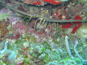 This past weekend we went to Roatan with Lauren and a whole bunch of people. It gave us a chance to play and try out Caitlin’s new underwater housing. This is the first picture of many to be uploaded to the blog and more will come once we are at school with faster internet. This however is my favorite picture that I took. It is a lobster that was hiding underneath a ledge in his comfortable home. I was able to get pretty close so the picture turned out well. Stay posted.