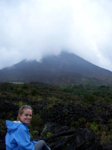 Yay, it stopped raining enough to see some lava! Unfortunately the weather was not very cooperative while we were in La Fortuna. We never got a completely clear view of the volcano, but were very excited when the clouds cleared enough to see this much of it.
