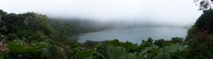 The last day in Costa Rica we spent the night right outside of San Jose in a very nice little hostel and happened to meet another guest who wanted to go up to the Volcano that we had thought of going up. So we split the cost of a cab to try to get up and see the Volcano before the fog covered it up. Needless to say we were disappointed when we got to the volcano and could not see more than three feet in front of us. As the picture shows below I was very excited about seeing a cloud. We hiked around the national park a little and when we came back to the volcano’s crater would could see in. The Volcano crater stunk of sulfur as we had expected and you could see a little steam coming out of the lake. After the crater cleared up I went running back up to the lagoon to see it since the first time we saw nothing more than fog. As the pictures show the clouds were quite low and didn’t leave a large window of viewing time.