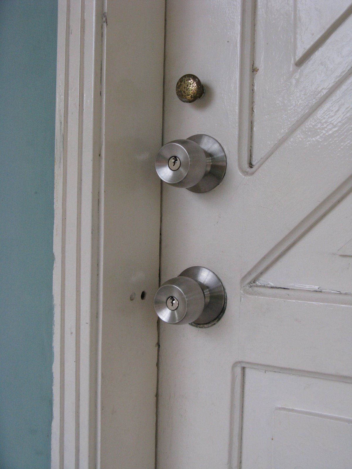 Yes, that’s two doorknobs…and believe it or not, they each take a separate key!