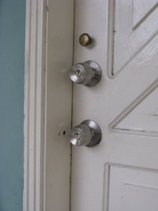 So Jesse’s door was broken…his doorknob only worked from the outside and his deadbolt only worked from the inside. Obviously this was fairly annoying and not very safe, so the maintenance staff came out and “fixed” his door….