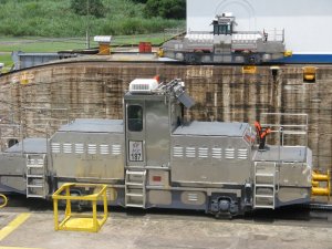 Tugboats go through the locks along with the big boats. The ships use their own motors within the Canal, but the tugboats help guide them into each lock.