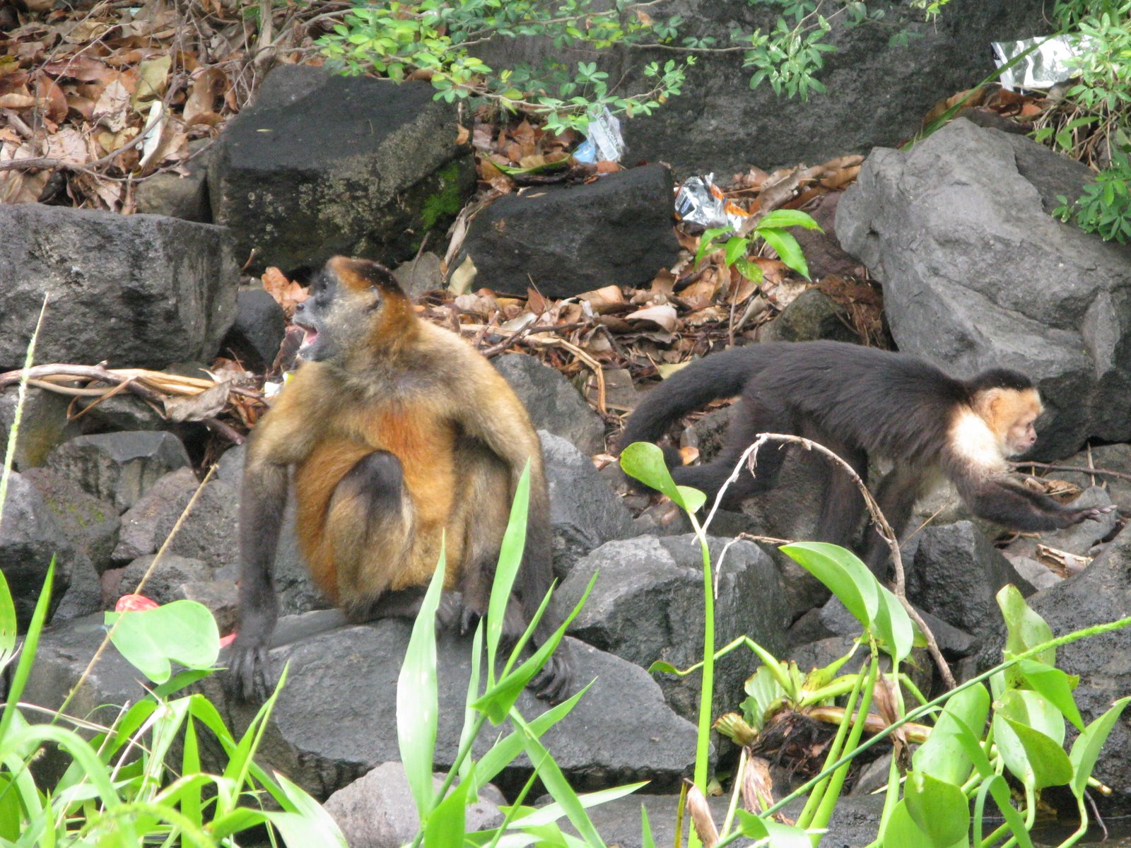 While in Granada we decided to take a half day boat trip to some small islands in Lake Nicaragua. The plan had been for all of us to go but unfortunately Caitlin was hit with Moctezuma’s Revenge (Don’t ask me what he was doing in Nicaragua but he hit nasty). We postponed the trip hoping she would get better but the following day she still felt she couldn’t handle being on a boat for a few hours without having a disaster. So Roberta, Jesus, Vicente and myself (Alex) went on and took the trip. The trip consisted of going to an old small Spanish fort, then swinging by an island with monkeys and finally stopping to have a drink on a final island before heading back. Just so you don’t get confused these islands range in size and are no bigger then a couple of lots.