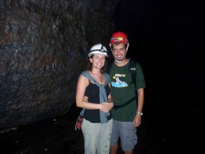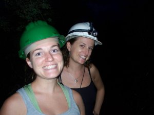 Jenna and I were good little cavers with our helmets on….and check out my handy headlamp!