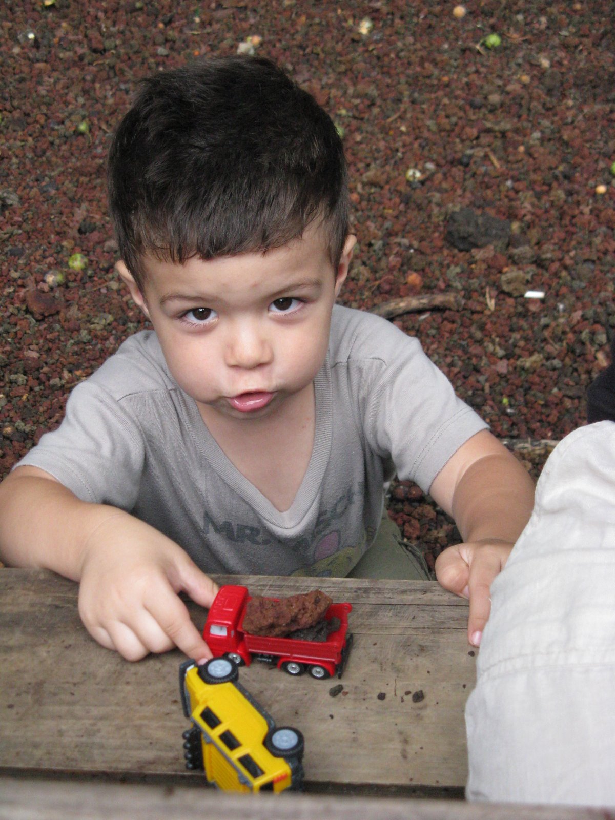 Transporting some lava rocks while we wait for the truck to the edge of the crater.