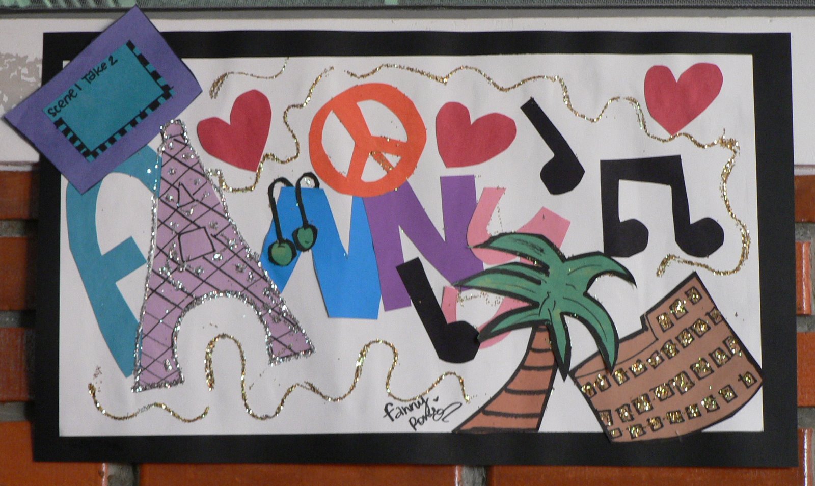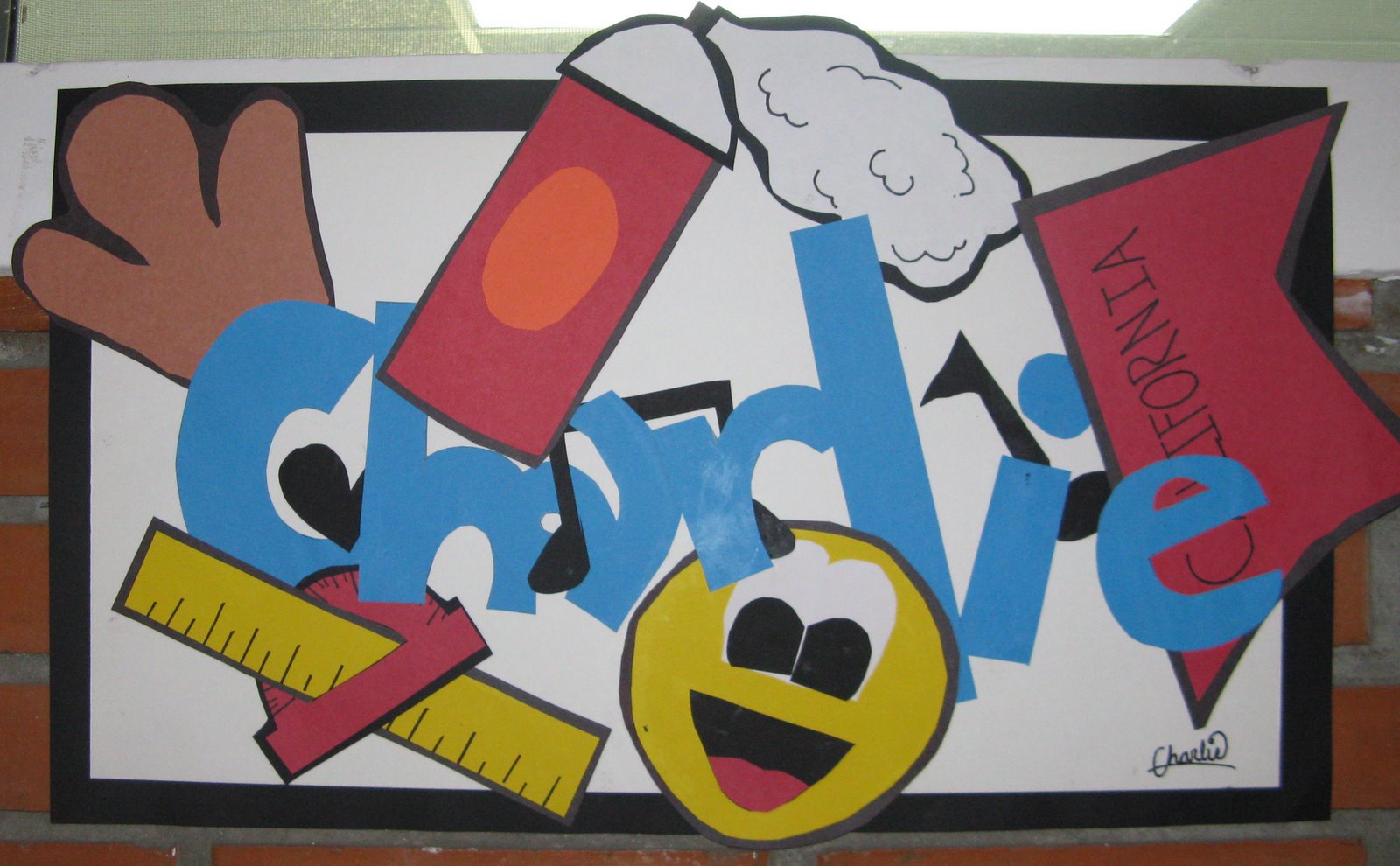We focused on the artist Henri Matisse and his style of collaging colored papers together. Each student was required to display their name and at least 5 things about themselves, either characteristics, likes, or hopes for the future. After talking about overlapping, composition, and craftsmanship, everything got glued together. Now the hallways are filled with colorful posters and the eighth graders are begging to make them too. Here are some final products: