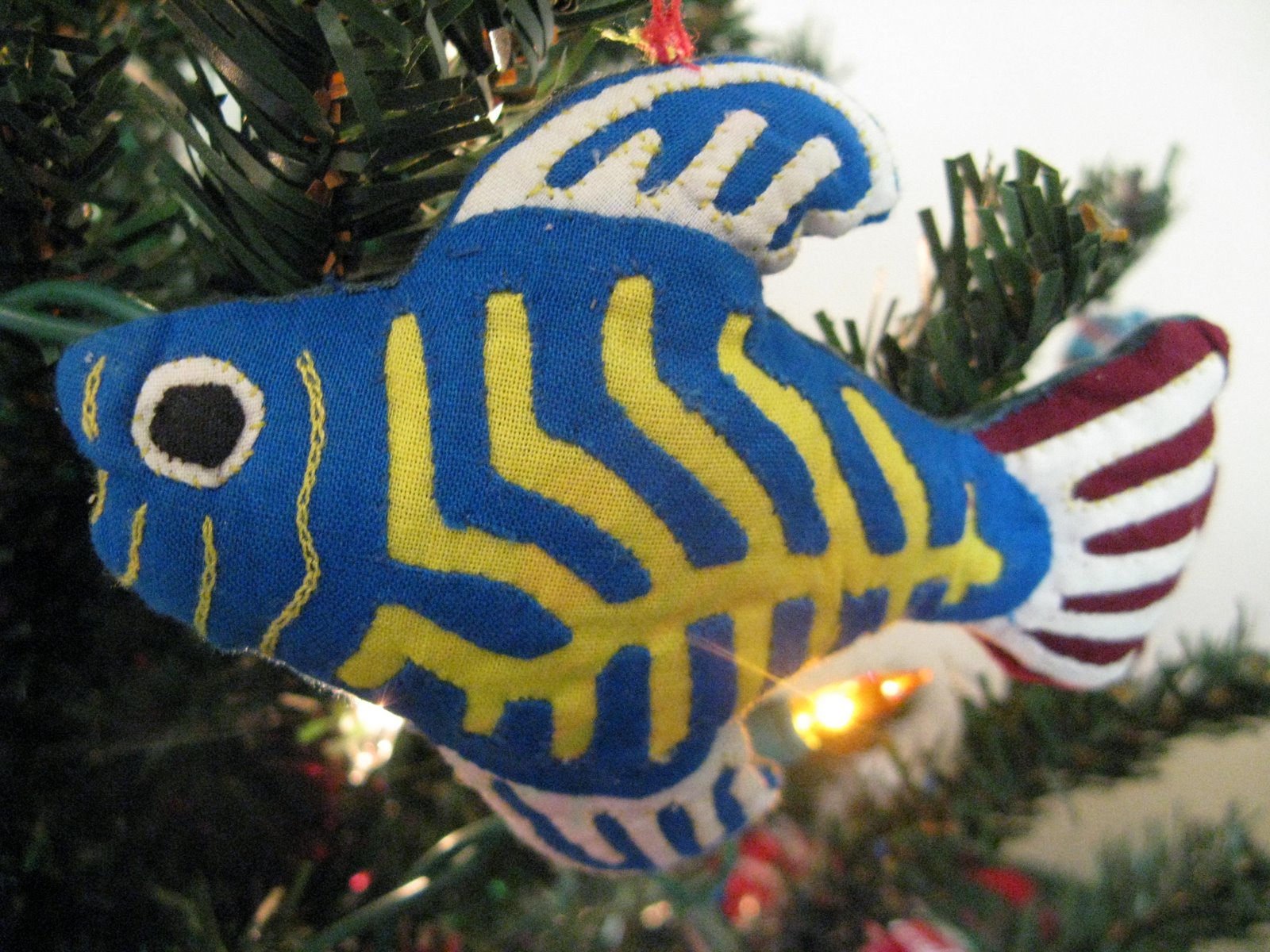 The fabric fish is made using the mola technique and we got it on the Kuna Yala Islands in Panama.