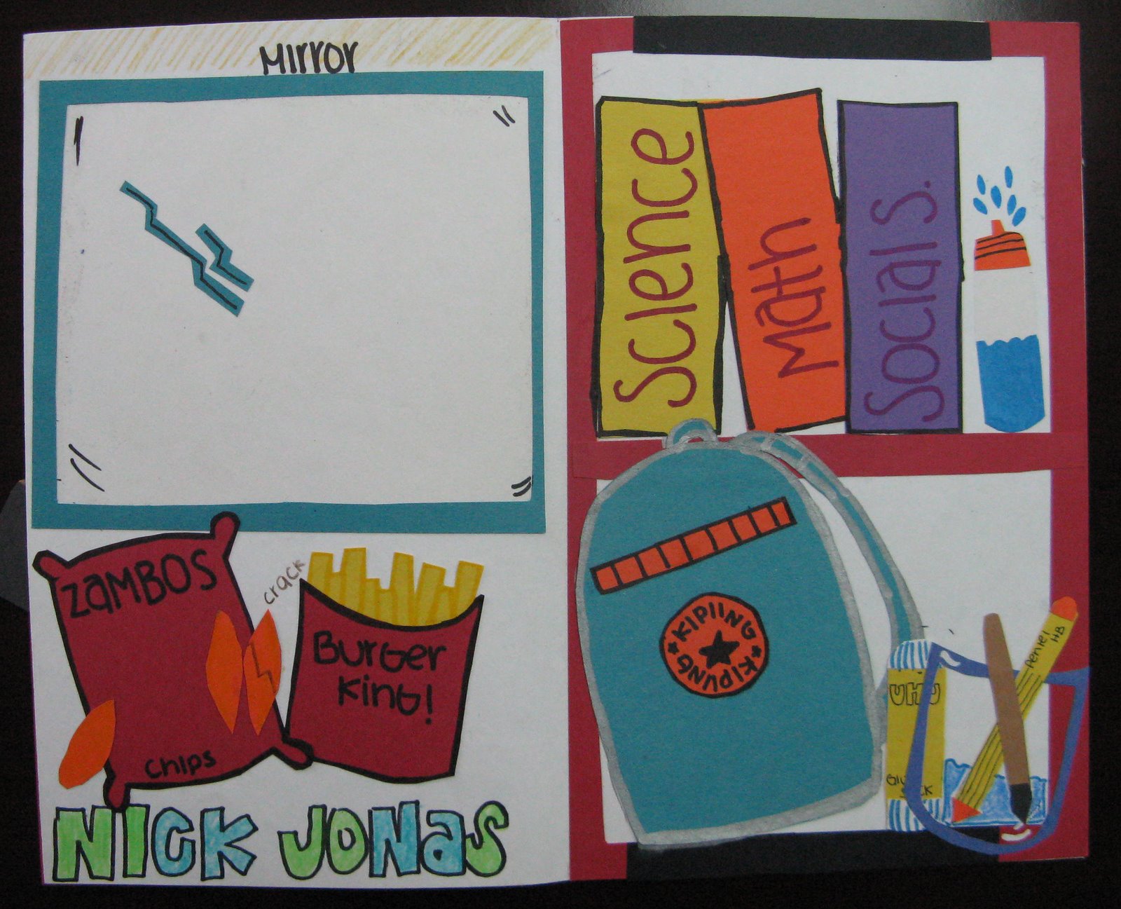 The lockers at EIS are red, so I had them create a red locker with the correct details on the door. In the inside they were encouraged to either create a realistic locker or a dream locker with whatever they wanted inside.
