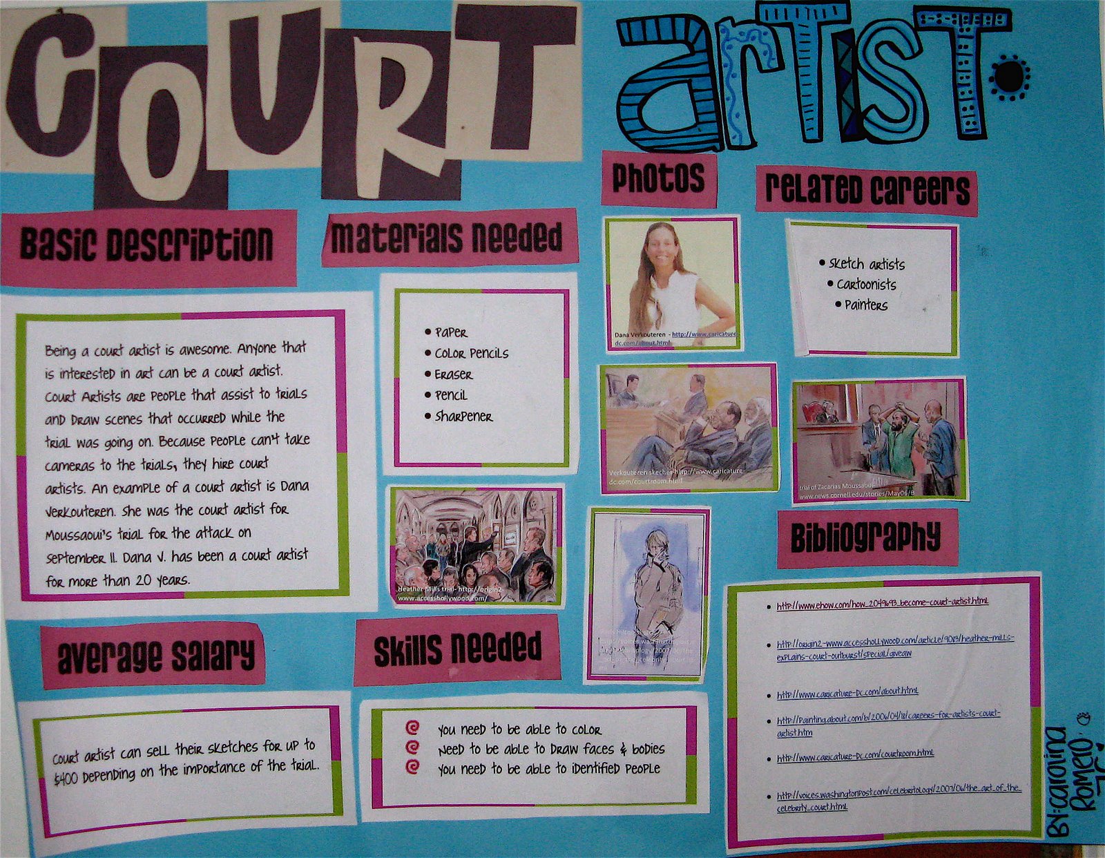 This past bimester, I assigned a research project to my seventh graders. Each of them had to learn about a different career that is related to Art and make an informative poster about it. I explained to them that their posters should be geared toward a middle school audience so that all the students in the middle school could understand the different aspects of the career in case it is something they might be interested in some day.