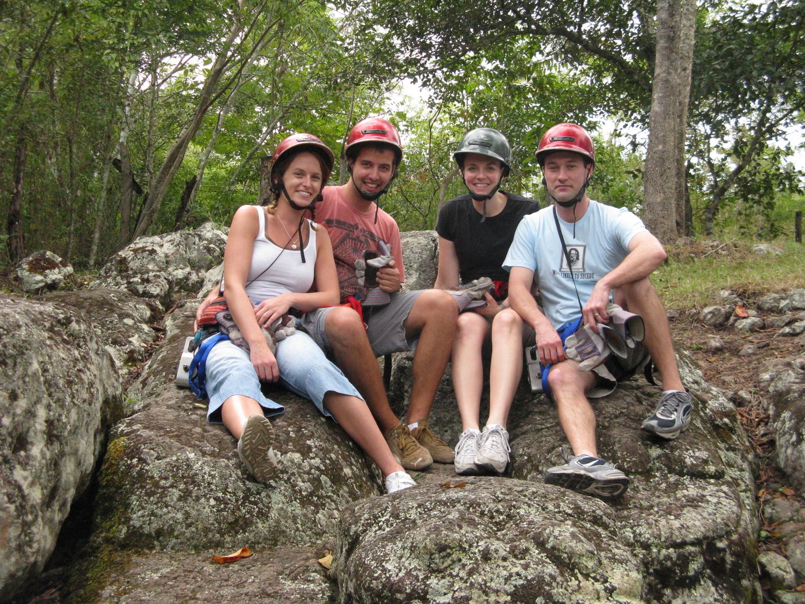We did the canopy tour right outside of Copan. Halfway through the zip lines you get to see the Sapos, the Mayan birth site. Here we are sitting on the part where Mayan women gave birth in ancient times. Our guide explained that the crocodile form is where the women gave birth, while the frog form is where women sat when they wanted to get pregnant. Jenny and I were very careful not to sit on the frog part.