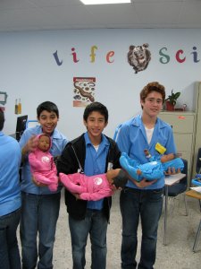 Each doll weighs approximately the same as a real baby and acts like a newborn, crying nearly every hour because it either needs to be fed, changed, held, rocked, burped, etc. The students wear a wristband that can’t be removed so that the electronic baby knows to respond to their parent and not someone else.