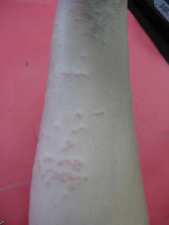 So I went to the school nurse and she covered me in anti-allergen cream, had me take a tylenol and sent me back to class with my arms and legs looking like this: