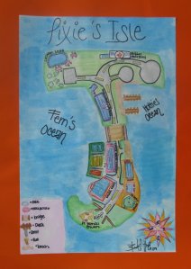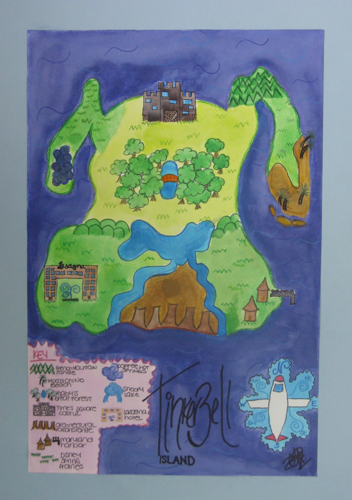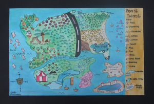They began by brainstorming various memories from throughout their lives and several goals they have for the future. Then they created a map where the different events and goals would be symbolized by locations or land features. They were required to include at least 10 things about themselves and to have at least 7 different land features on their map. They also had to include a key for their land features and a unique compass.