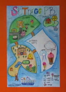 Last year I was lucky to be able to purchase watercolor pencils and crayons so the students used those along with watercolor paints to add color to their maps. The last step included using permanent markers for place names and tiny details.