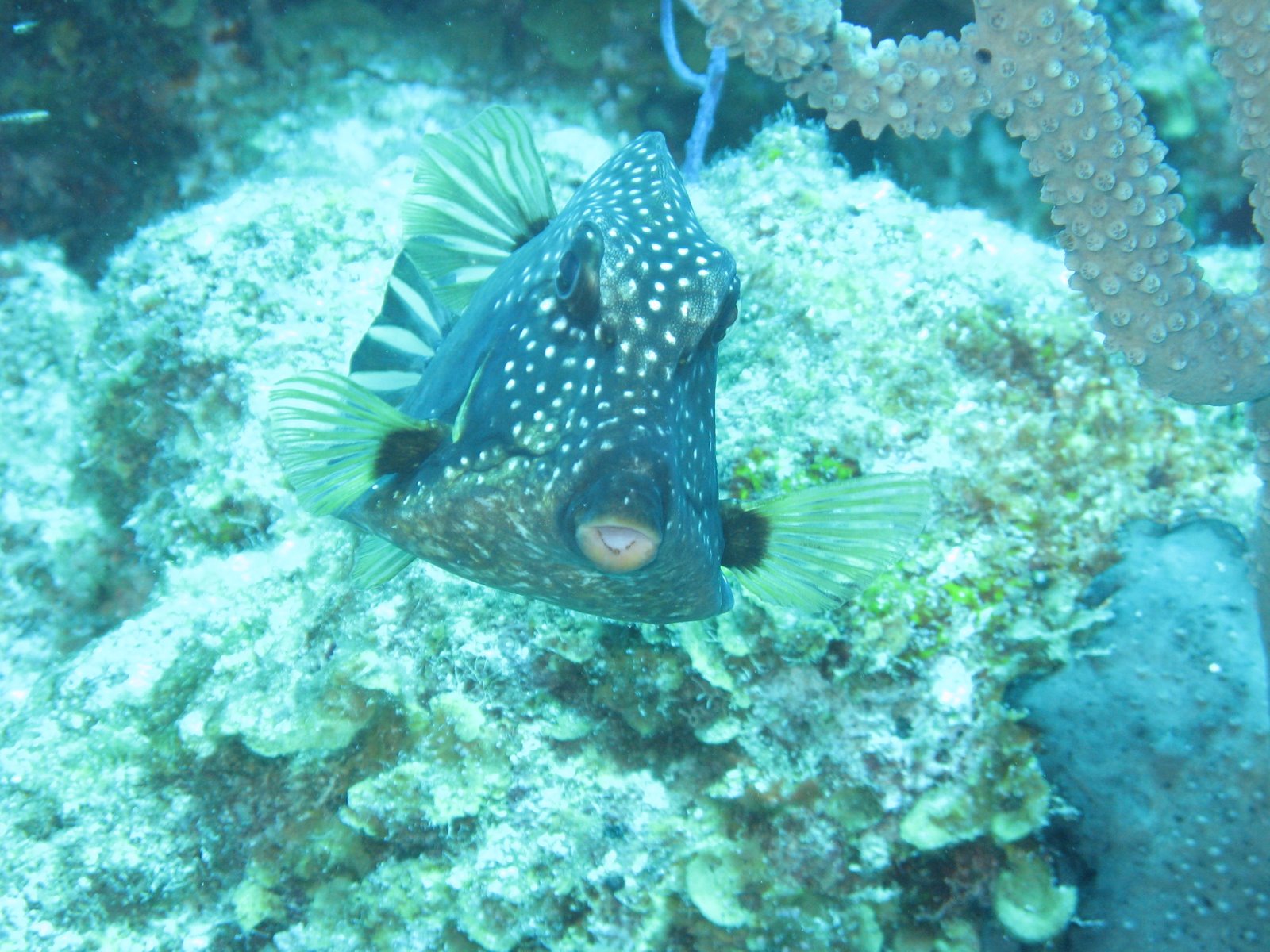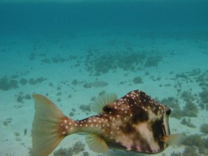 Trunk Fish who wanted very badly to swim in front of the camera, but then turned away every time I tried to take a picture.