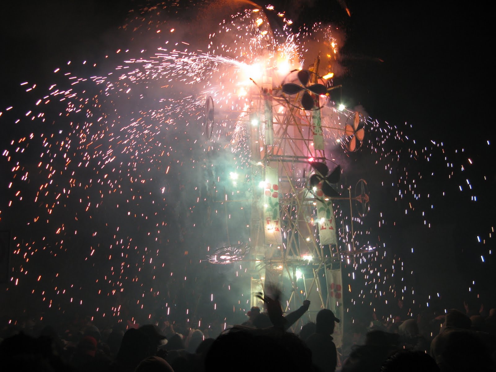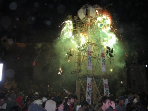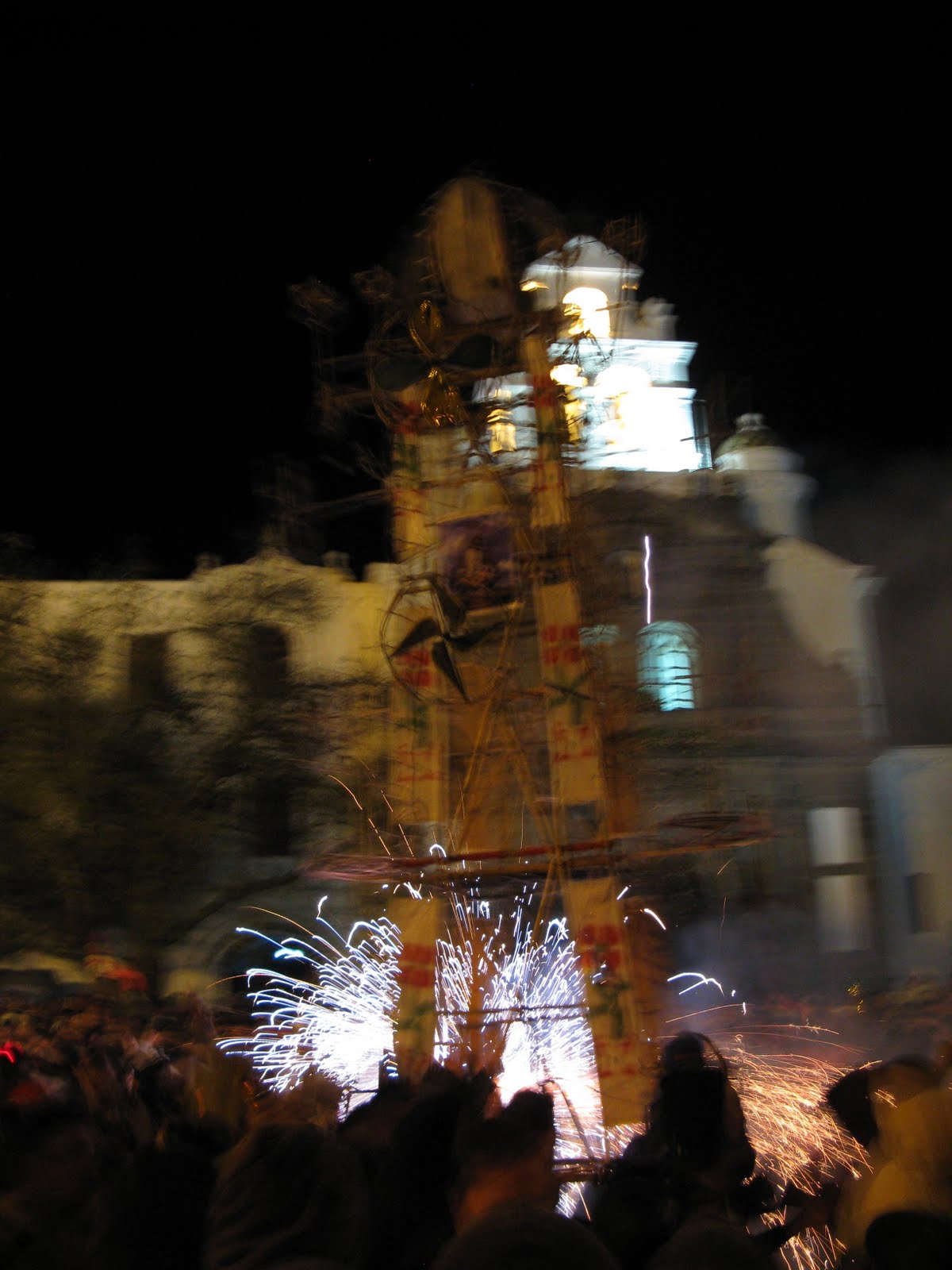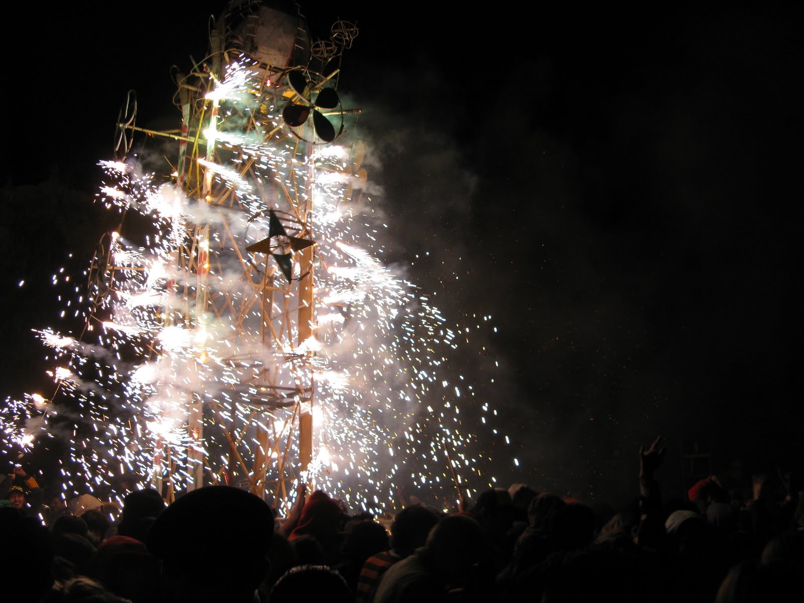 Once everyone had warmed up from the inside out and gotten their dancing feet prepped, the fireworks began. A huuuuge bamboo contraption was placed in the center of the crowd and as it started to burn from the bottom up, people began to dance in a circle around it.