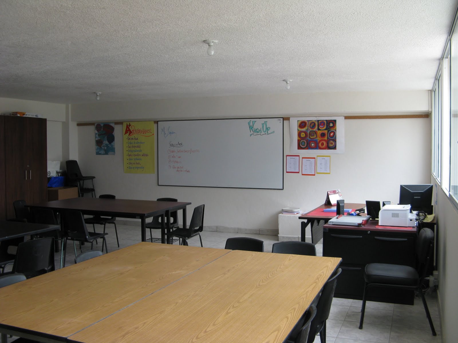 I got these fabulous new cabinets installed! There is lots of space for storing all the supplies that I don’t quite have yet!Actually I shouldn’t complain. We have an almacen here (it was called a bodega in Honduras for those who are familiar) which is a lot like a school supply room only with tons more stuff and you have to fill out a requisition to get it. Not only do we have lots of good stuff in our almacen for me to snatch up, but I can request items to be ordered and get them in just a few days! So far I have accumulated a ton of construction paper, a class set of scissors, an electric pencil sharpener, external computer speakers, 25 boxes of colored pencils, 200 pieces of poster board, and I have 25 boxes of watercolor pencils coming (among other things). My students also had to bring in supplies so we have an absurd amount of watercolor paints and palettes, some modeling clay, paper towels, and printer paper.