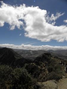 This past Sunday I decided to embark on my second hike towards taking on Coyabamba. This hike took a little bit more dedication than the previous one did. I had to get up at 4am inorder to get to the bus by 5am. I thought multiple times about crawling back into the warm bed. I even received encouragement from Caitlin to get back into bed. I had to fight the urge with every fiber in my body to go. In the end I decided to go. While sitting on the bus waiting to leave I thought how in the world are there so many nut jobs in Quito who are as crazy as me to get up and go hiking on a Sunday. I slept for the first hour of the bus ride, so I have no idea what happened then. After waking up for the second time I got some specatacular views on our way to Quilotoa. Some of the pictures didn’t turn out very well but thought I would post them because I thought they were pretty cool. When we finally got to Quilotoa about 3.5 hours later we were at the top of the volcano. The guide told us we were going to hike around the crater, which I didn’t think seemed that bad. After two hours and not even halfway around the crater, I realized that my eyes had deceived me again. I finished hiking around the whole crater and got some great pictures in the process. Amazingly enough I was not nearly as exhausted as I was on the first hike. Looks like I’m getting used to the hiking.