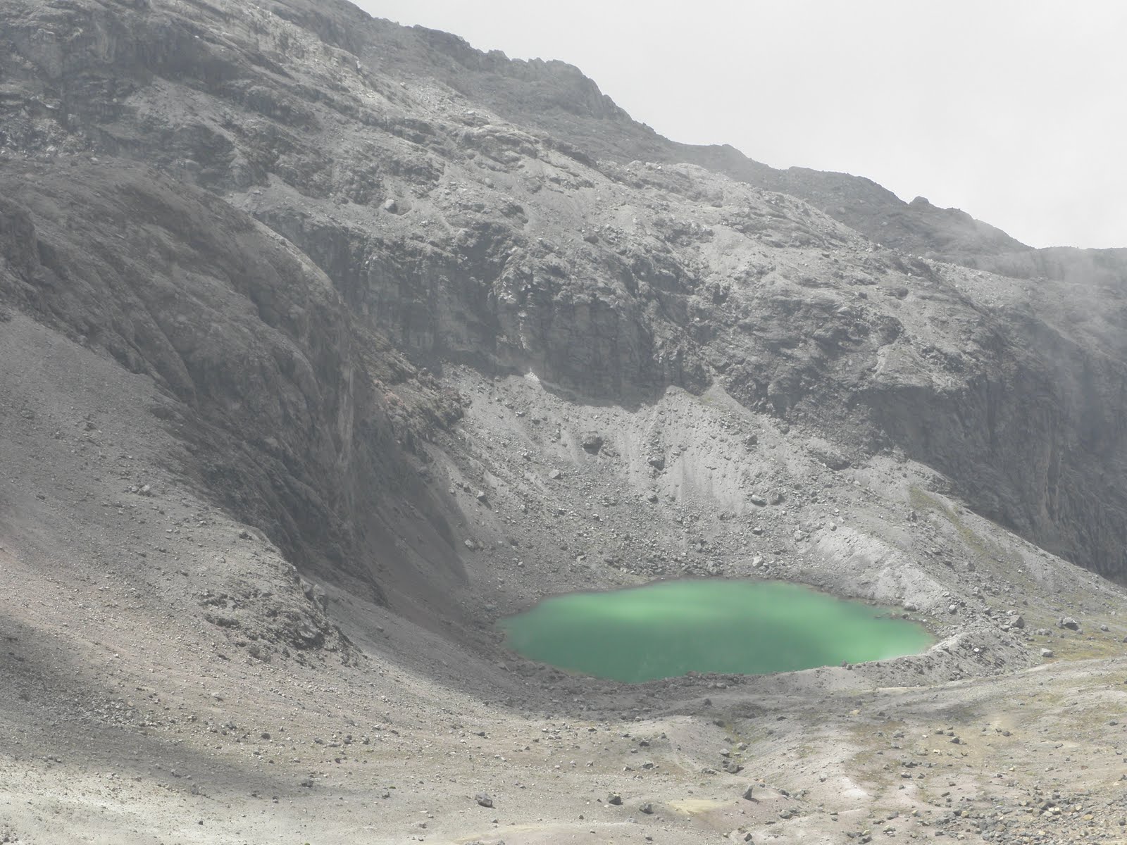 At the Refuge we met a couple other climbers as well as a concessions operator who offered us soup, tea, water and many other snacks. The Refuge is a stones through from the saddle between Iliniza Norte and Iliniza Sur. From here we could see down into the ancient Volcan crater which today holds an emerald green glacier fed pond.