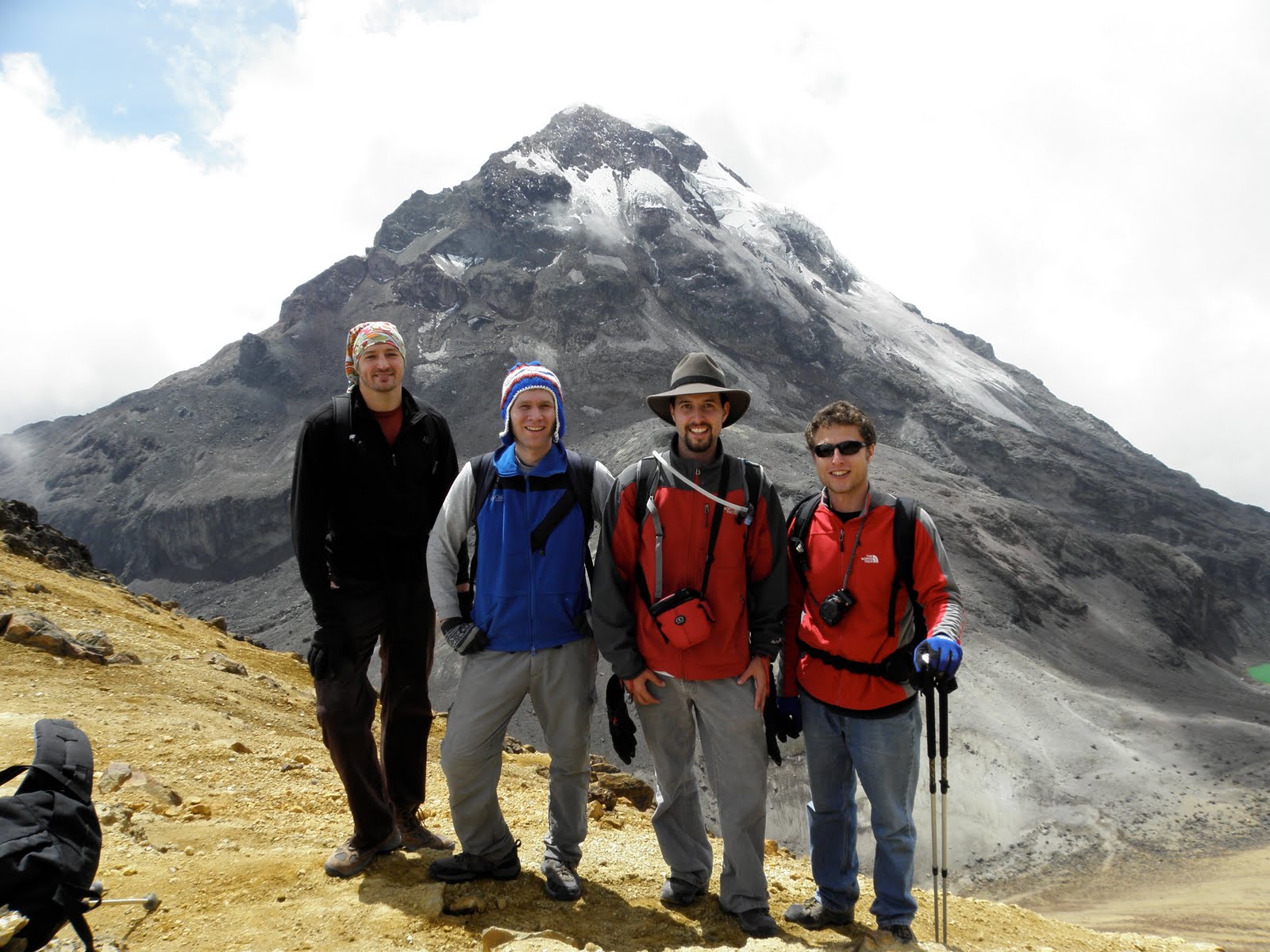 The crew, on the spine during a small break where we met a German girl who graduated high school from Platteville, WI. Iliniza Sur in the background.