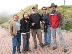 Since we didn’t want anyone to have too long to rest, we got up early again on Sunday morning and headed for the Teleferiqo. This is something I hadn’t done before so I was pretty excited. The teleferiqo is a cable car that takes you partway up Pichincha, one of the mountains on the edge of the city. From the top you have a beautiful view of the whole city and you have a chance to hike the rest of the way up the mountain. Unfortunately the clouds were not quite cooperating with us and when we first got to the top of the cable car ride all we could see were clouds. But he set out on the hike to the top anyway and as we went things began to clear a little. None of us summitted, but considering the nearly 15,000 foot altitude I was proud of all of us for hiking at all. It was especially nice to be breathing some super clean air.