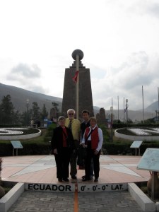 7:30 came pretty early on Saturday as the bus we had rented arrived to pick us up and take us to Otavalo. One of the bus drivers from the school agreed to drive us wherever we wanted for a bit of a fee which proved to be much more comfortable than taking the regular bus. We stopped at the equator on the way to shopping heaven. There are actually two places to visit the equator in Ecuador….la Mitad del Mundo has the huge monument and tourist shops and was built a loooong time ago. Turns out that back then their calculations were a little off and that equator is about 240 m wrong. So someone else has attempted to create a tourist spot at the “real” equator. It’s not nearly as big or exciting, but we still felt it was worth a stop….plus it was a good excuse to get out of the bus and use the bathroom.