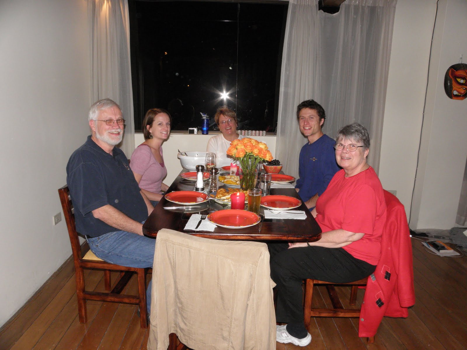 We picked them up from the airport on Thursday night and it was a mad house!!! There were so many people we could barely walk around and I had to shove past people and state loudly, “Es mi hermano!!” when I finally saw them just so that I could get through the crowd to intercept them. We brought them back to the house and forced them to marvel over our view of the city and then we all headed to bed. We are fortunate to have two extra bedrooms for guests, but that still meant that David had the couch….or the floor as he later chose.