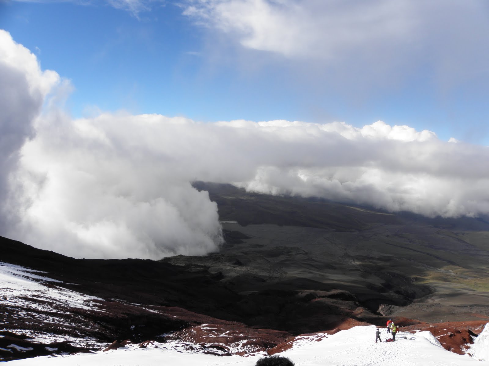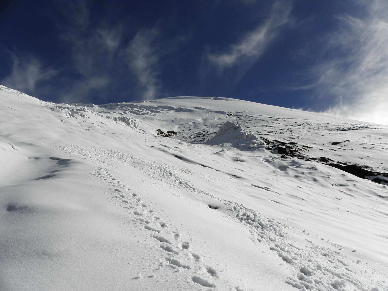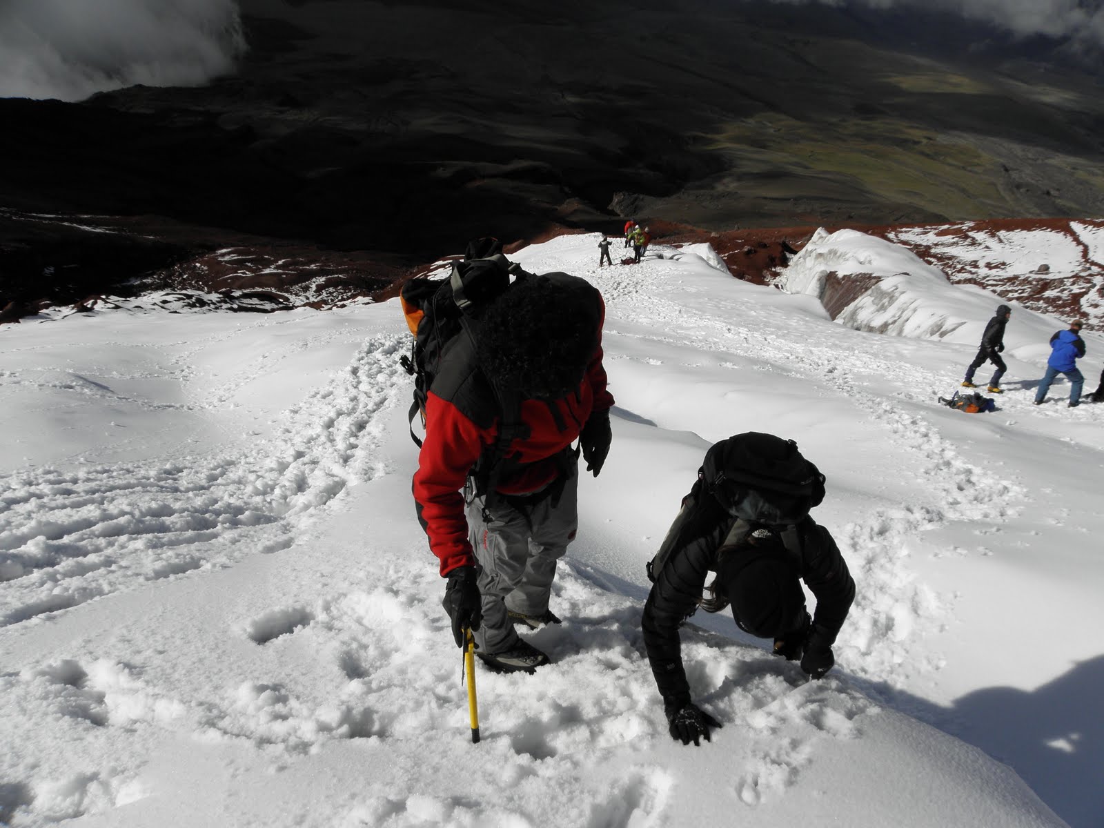 In the next couple of days we will be posting all the great pictures from Chile, so I thought I would get this post up since it is overdue. I did not want to post it prior to going to Chile as it may have worried some of our readers. As many of you know from the hiking posts, I had been training to hike Cotopaxi, a glacier covered volcano just shy of 20,000 ft. Well the weekend of Dec. 12th was the date that was planned for. Eric, Diana, Dave and I set out Sat. morning in two SUVs with a couple trunks full of gear and three guides. We were stoked and ready to get going. We arrived around 11am on Sat at the parking lot of Cotopaxi and proceeded to gear up and put on our backpacks for the hike up to the refuge. We were only going up about 700 meters from 4100mts. to 4800mts. We made it without any incident and took a short break before beginning our crampons and ice axe training. We hiked up to the glacier and donned our gear and did the different drills our guides taught us and were done and having dinner by 5pm. We carb loaded with spaghetti and were in bed by 6pm. I was unable to fall asleep because of the early time, the high altitude and excitement of knowing that we would be hiking at 1am. It also didn’t help that the four of us were like kids at camping too amped to sleep and feeding off of each others energy. After what seemed like an eternity midnight came and we geared up headed out onto the pitch dark mountain, with headlights shining the way for us. After about 10min of hiking it began to sleet, which didn’t hinder any ones spirits as all four of us went to school in the Midwest it didn’t seem much worse than a hike to class. About 2 1/2 hours into the hike I had gotten over my initial adrenaline rush and was getting into a rhythm and was feeling like this would not be that difficult. But like all famous last words about 10 minutes later our lead guide collapsed in front of us. I immediately suspected a cramp but as he rolled over and yelled for us to call the rear guide up it dawned on me that we weren’t going to make it to the summit. As my light from our headlights soon revealed a rock had fallen and hit him in the side of the head. To make matters worse the rock missed his helmet by an inch. It had managed to find one of the few inches of exposed skin. We quickly became a roadblock in the trail as we tried to get him bandaged up and back down the mountain. We slowly traced our trek back to the refuge. We got down far faster than we went up. The two guides then went to the ER for stitches, while we waited in the refuge to see what would happen. So while I am disappointed that we did not summit we accomplished the golden rule of climbing and that is to always make it back safe and alive. Below are the few pictures that I was able to get.