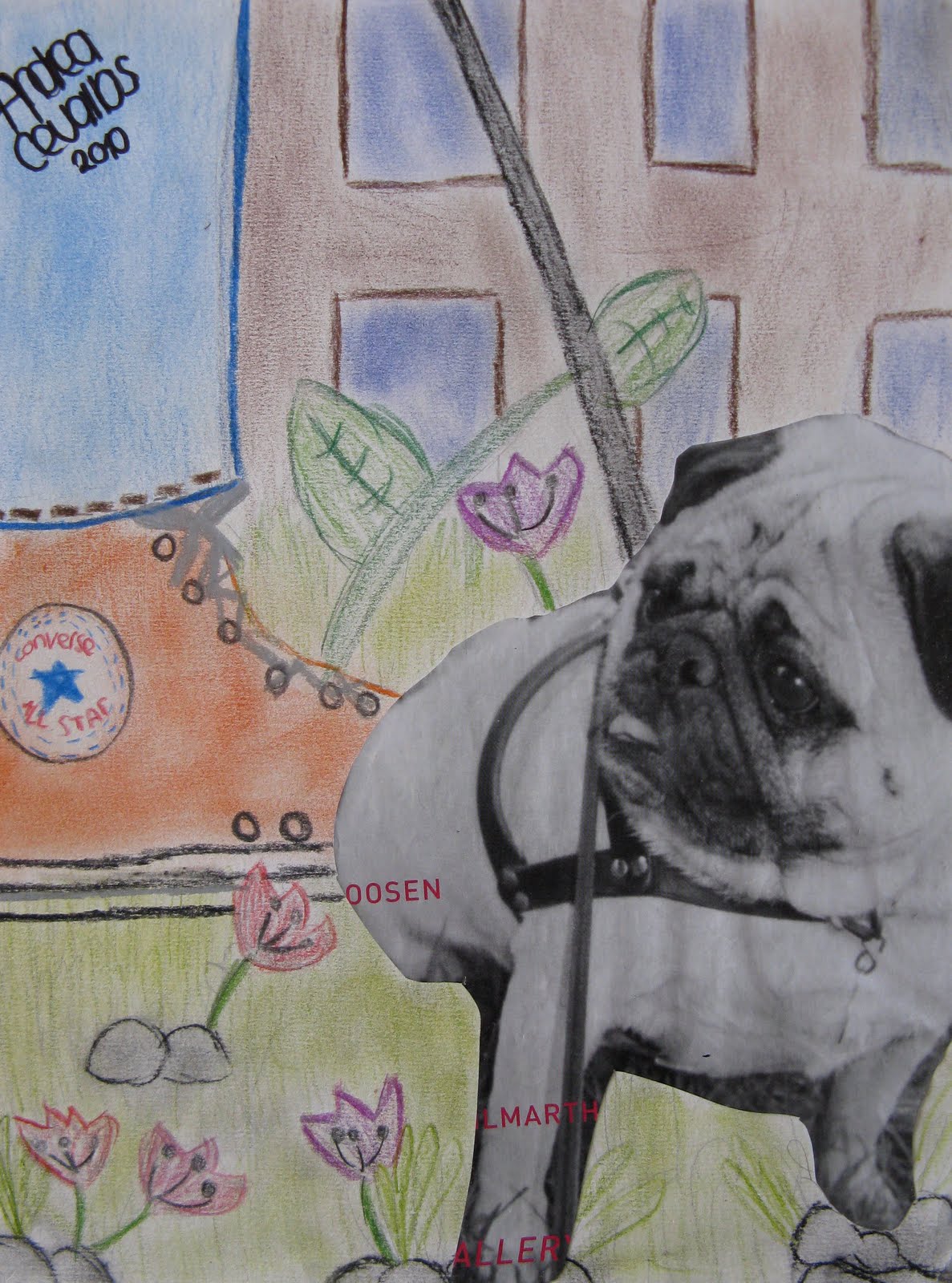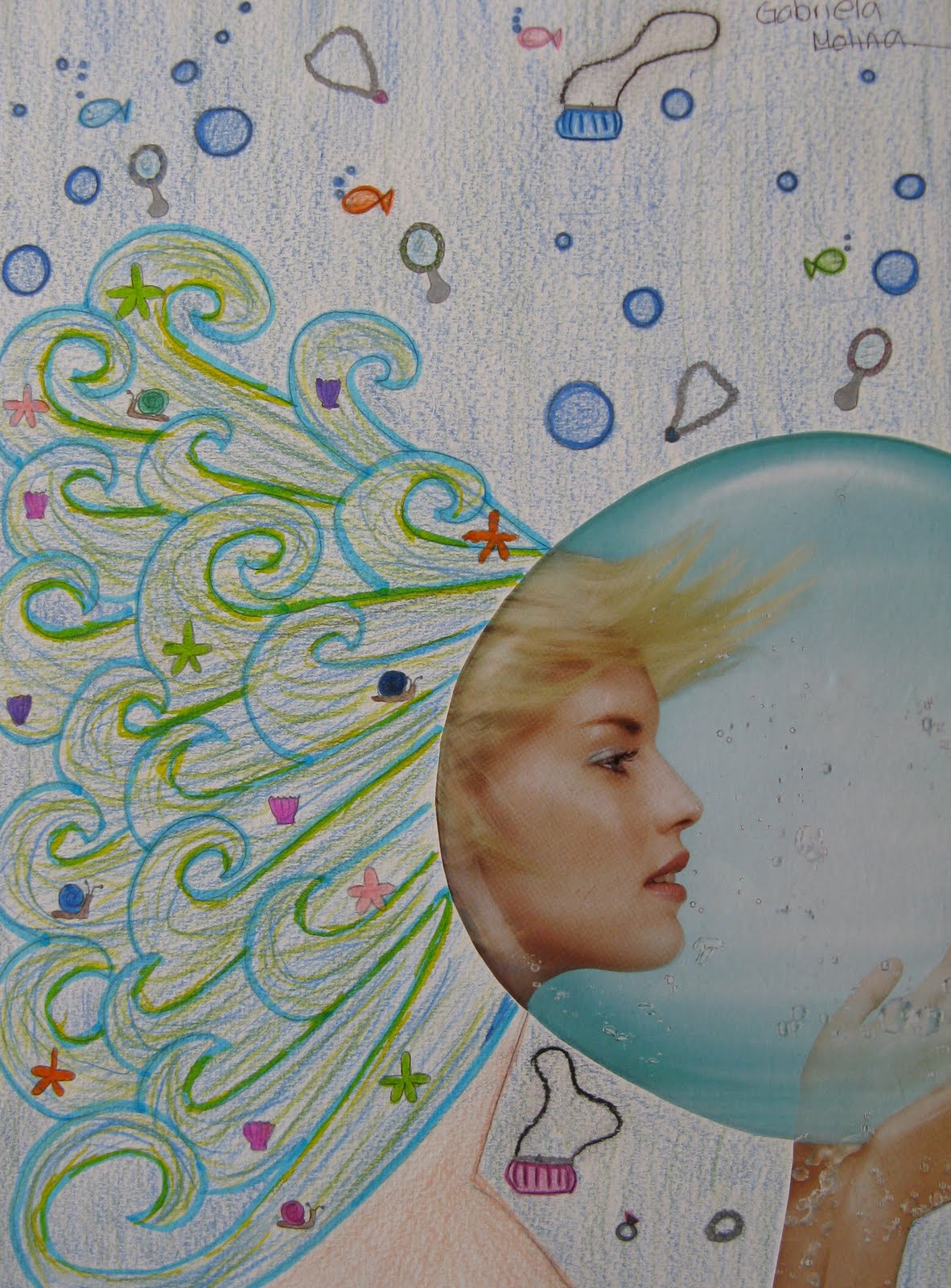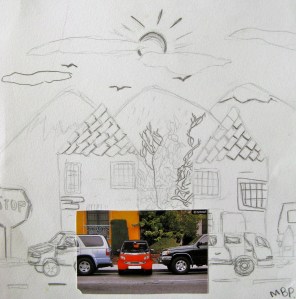Find a picture in a magazine, cut it out, glue it to a piece of paper, finish the picture however you want….