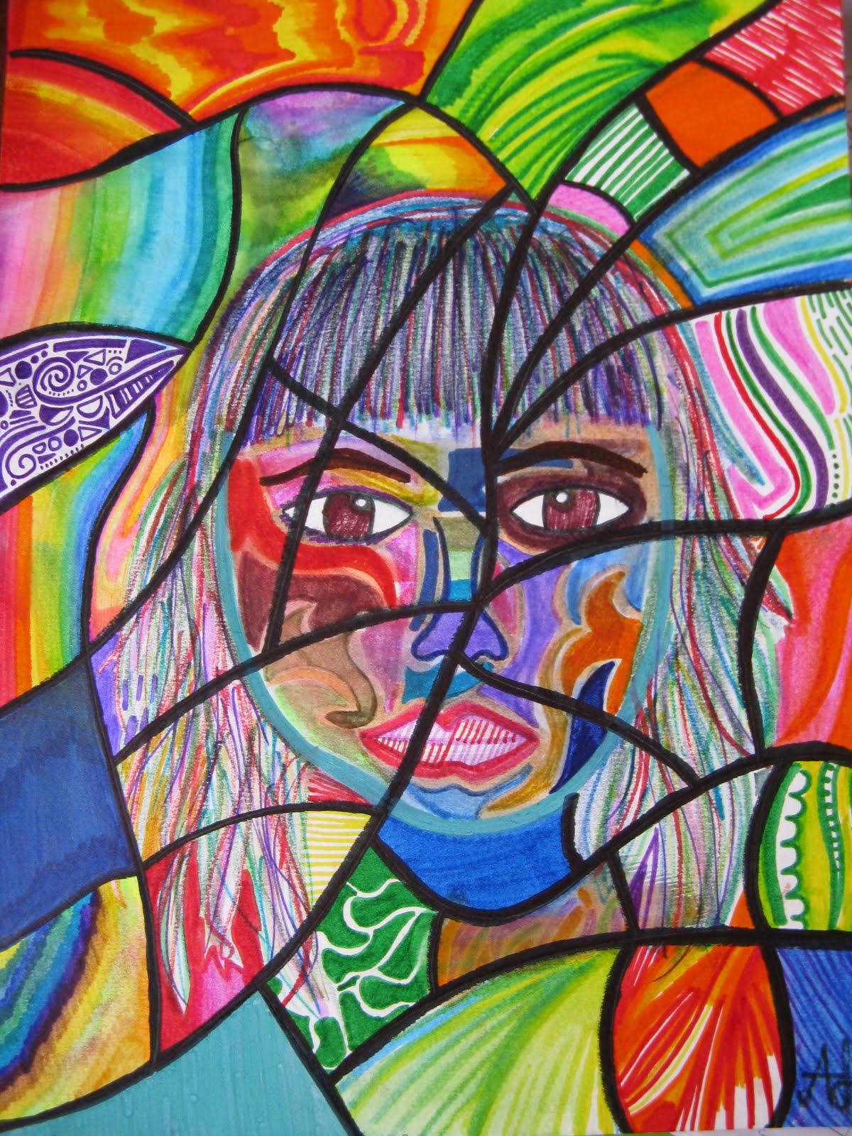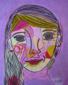 Interestingly, more kids chose Realism than Cubism which I think was mainly due to the fact that it seemed “shorter” since the Cubist route required coloring or painting and in some cases cutting and gluing. They also, in general, struggled with Cubism because once they had drawn the face so well they were hesitant to cut it up for fear of ruining it. This was very reminiscent of a project I did in college where every student learned basic woodworking techniques by making the exact same table. Our next assignment was to use the table to create something else so we all had to cut our tables apart! It was painful to destroy something we had so painstakingly created when we weren’t sure how the second item would turn out.