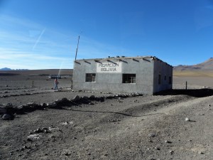 Traveling over the years we have come across some rather basic immigration stations. However upon entering Bolivia near the salt flats we came across a immigration station that looked like it was out a movie set. As you can see from the photo there isn’t much to this immigration office and if you look carefully you’ll see the bathroom. It is the rusted out bus in the background. I thought this was a joke at first, but when asking where the bathroom was they pointed to it. So I went behind the bus and sure as shit, there was a pile of shit, apparently this bathroom had been in operation for a while. However while waiting we were entertained as we waited for our driver by a fox that had learned to get handouts from the tourists. We’ll post pictures of the fox a little bit later once we get them from Amanda.