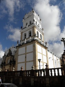 Sucre is a pretty colonial town (although I wouldn’t go quite as far as agreeing with Lonely Planet’s decree that it is reminiscent of Florence). With a nice plaza and several acceptable restaurants, we took a chance to relax for a bit, mostly eating and doing laundry. One of the main attractions listed in the guidebook for Sucre is the dinosaur park where apparently real dino footprints were discovered. The idea of seeing a dinosaur footprint up close, taking our picture with it and even potentially putting our own foot in it for size comparison were too much to pass up. We excitedly hopped in a cab and headed out to witness the giant imprints…and that was probably the most exciting part of our trip to the dino park.