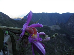 The trail felt super populated compared to our last 3 days…all sorts of tourists were headed up toward the sungate from Machu Picchu. It took a lot of self-control not to be big bullies and make fun of them for taking the train to Aguas Calientes and then walking a mere hour or two…especially after the grueling time we had on the trail. We didn’t shove anyone off the trail though and instead focused on arriving at Machu Picchu and enjoying the orchids along the way.