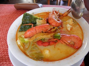 We had been hearing about Chupe de Camarones ever since arriving in Peru and with a recommendation from the owner of our hotel we headed out to find some. The restaurant was hidden on a side alley, but was absolutely packed (two stories high, huge and barely an empty table in sight). Alex and I decided to split the Chupe de Camarones. Good thing since these bowls are each a half of a serving!