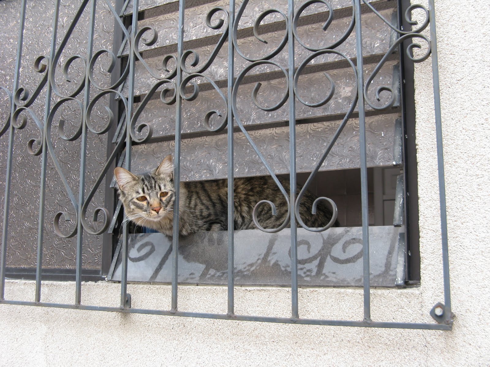 After we got back from our summer travels, Frijol took it upon himself to create a better view out of the bathroom window…by knocking out one of the panes of glass.