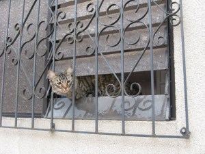 We were woken up in the middle of the night by a loud crashing sound. A bit freaked out that someone might be breaking into our apartment, we listened intently only to hear the scurrying of kitten feet downstairs. I sent Alex to investigate and he came back minutes later to report that Frijol had knocked a pane of glass out of the window where it proceeded to fall two stories and break in our landlord’s patio area.