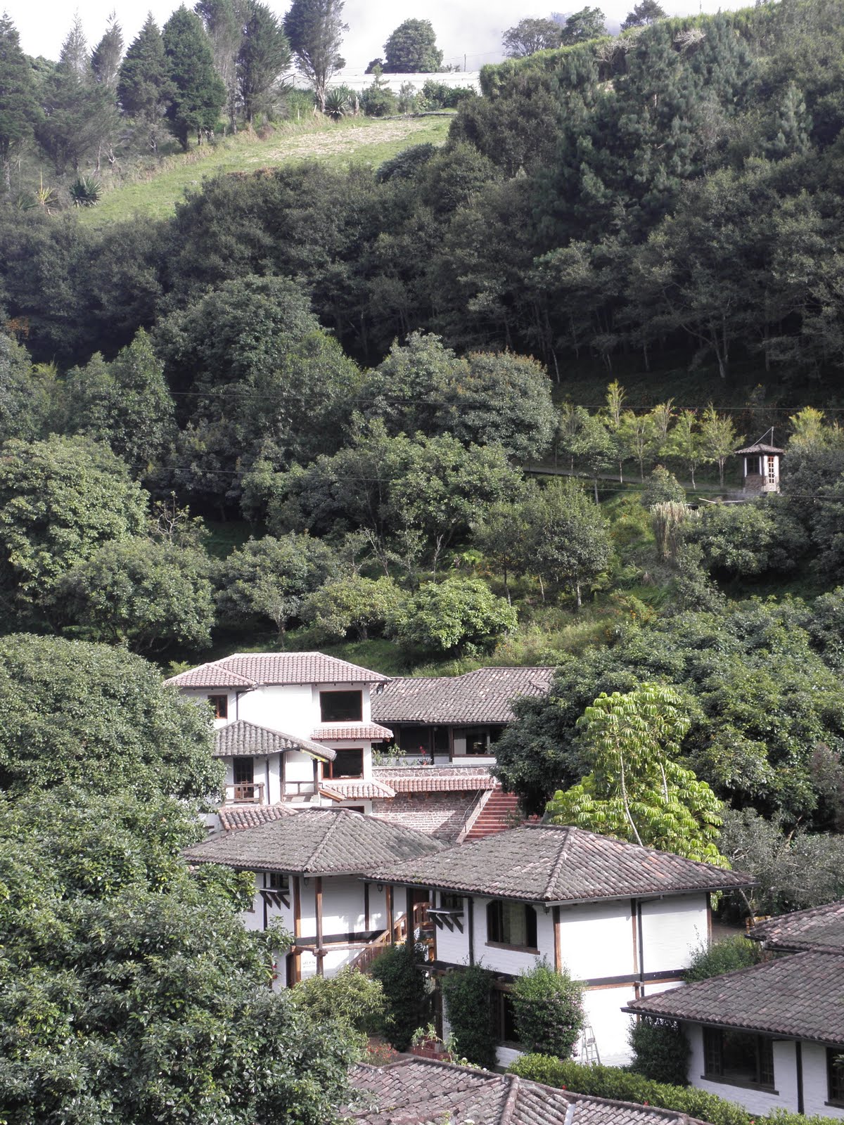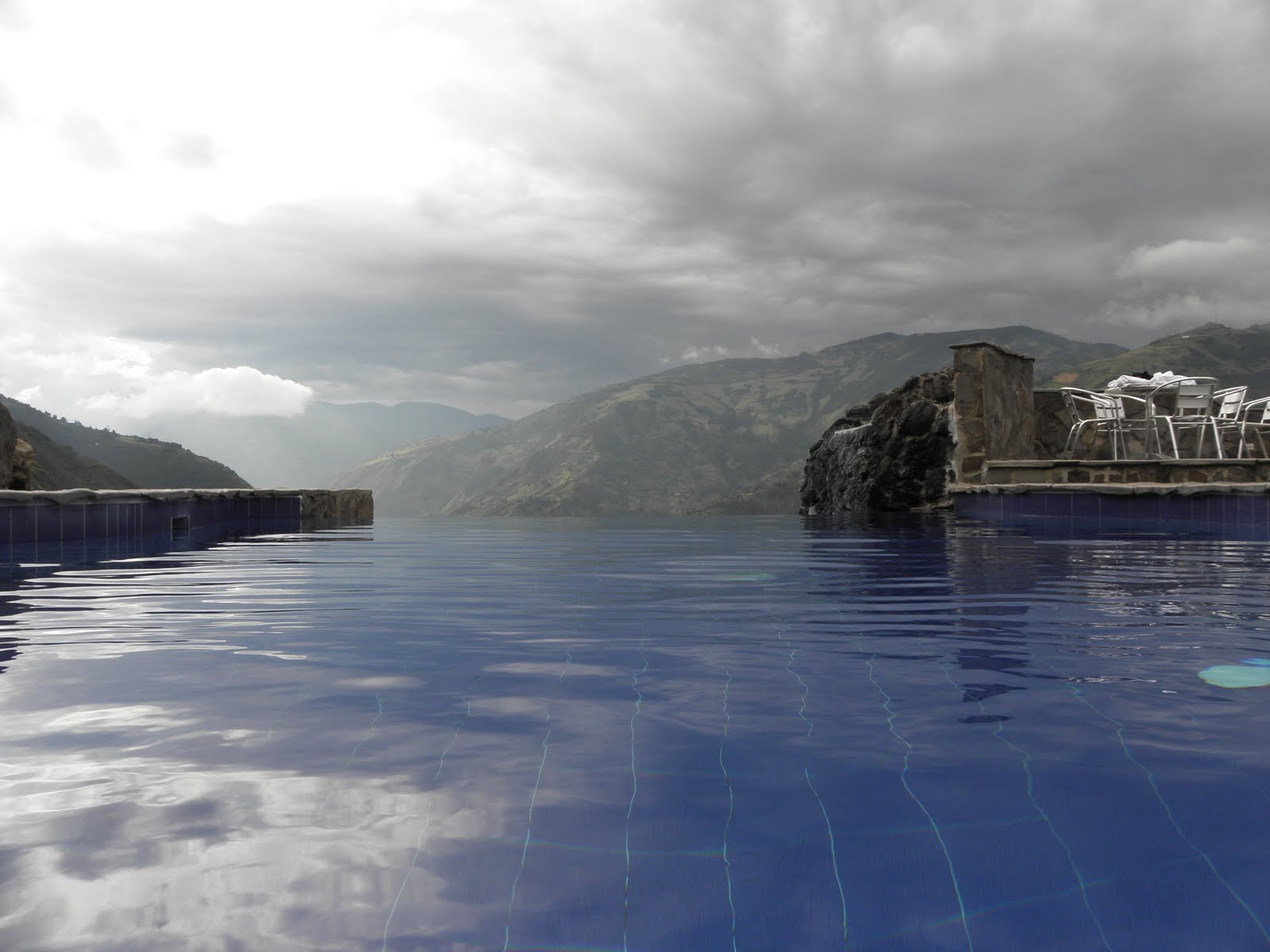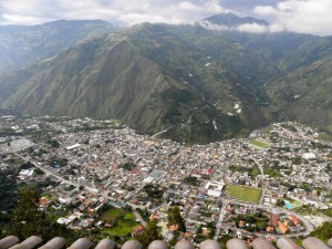 As an extension of my birthday (because let’s face it, it lasts all month), we spent last weekend in Baños, a town about 4 hours south of Quito. We spent the first night in town, eating massive amounts of meat at an Argentinean restaurant and passing out early, exhausted from the bus ride. On Saturday, we headed out of town and up the hill to Luna Runtun, a fancy hotel with thermal pools that overlooks the city. We enjoyed a lazy afternoon, soaking in the pools and playing dice with Erin and Andy, followed by dinner and playing cards with Erin and Andy. It was a wonderful, relaxing weekend with amazing views of Baños.