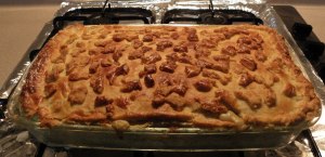 The pie pan is currently at the neighbor’s house, so I had to use the pyrex instead….tastes just as delicious!