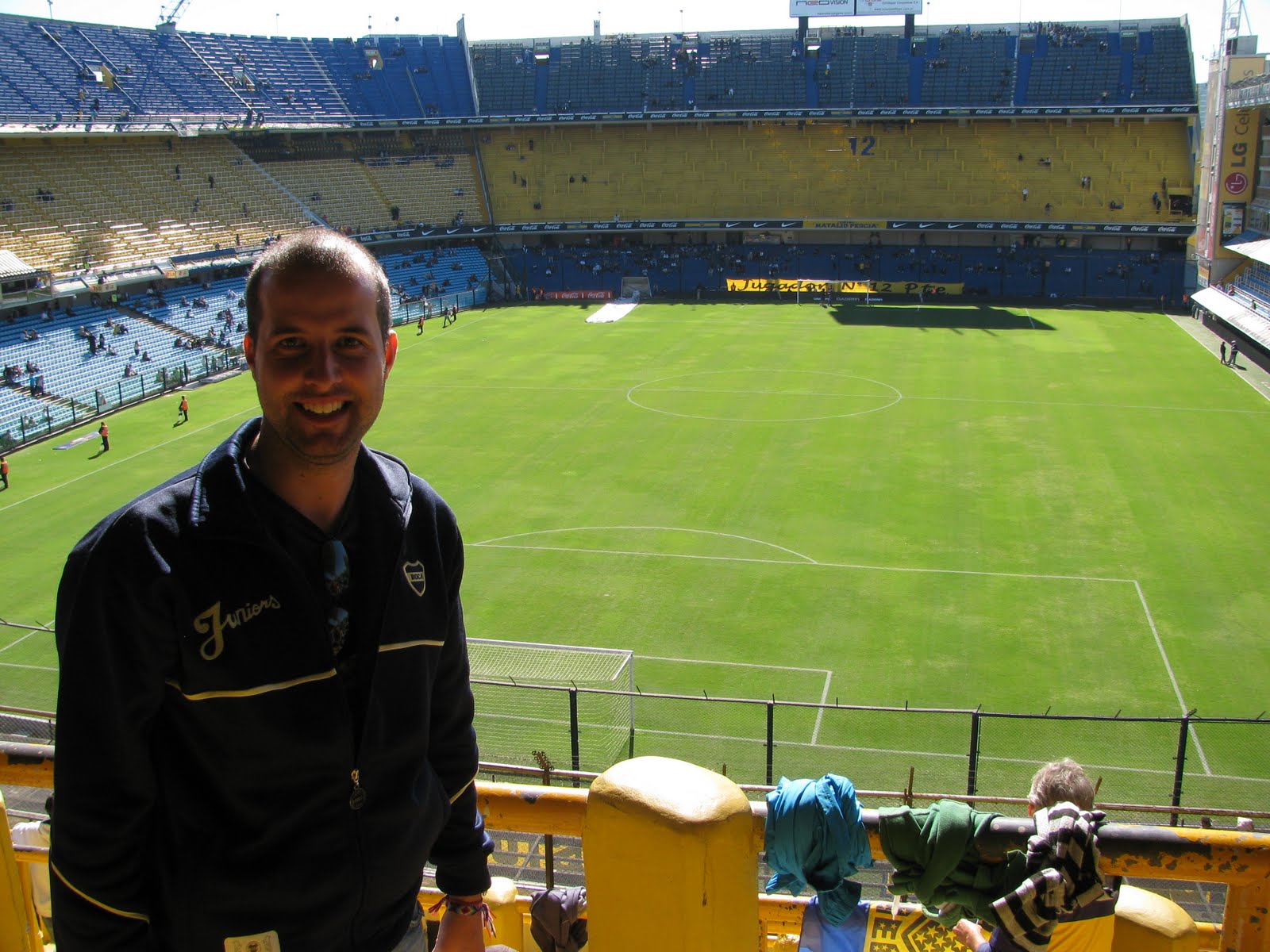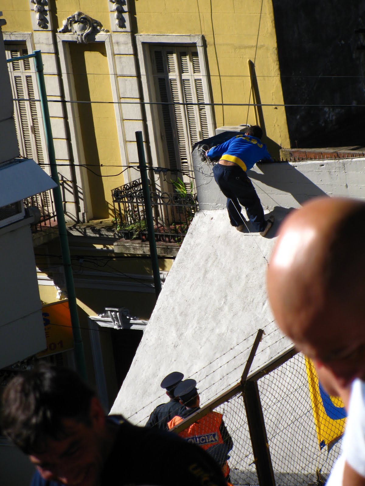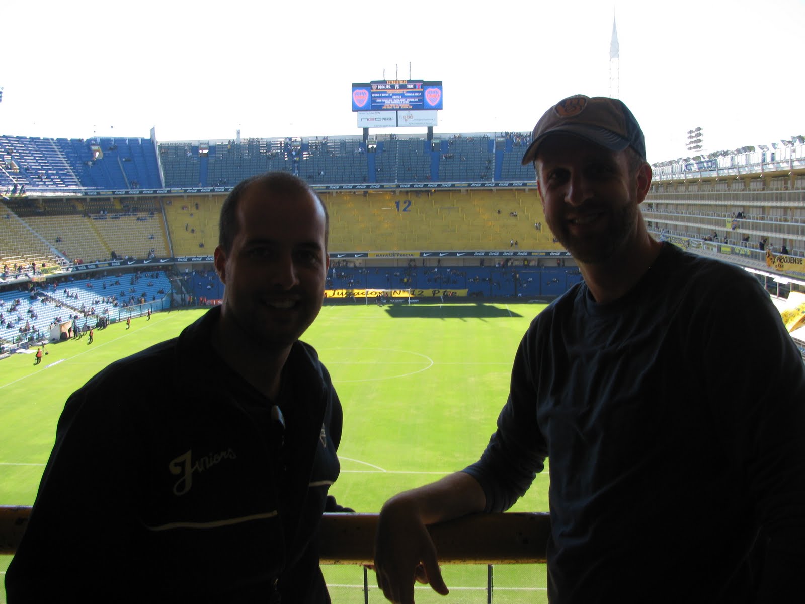 When we decided to go to Buenos Aires for Springbreak, I was hoping that there would be a Boca Juniors Game while we were there. For those of you who are unaware Boca Juniors is a famous Argentinian team that has had Maradona, Palermo, and Riquelme along with many other greats. Caitlin and I did a tour of the stadium and the museum before Jesse and Jenna joined us in Buenos aires. At the stadium tour we learned about how Boca Juniors was founded and how they chose their colors. Apparently they had the same colors as another Buenos Aires team, both teams decided to have a playoff to decide who gets to keep the black and white that they had. Boca lost and since it was located near the port decided that they would change their colors to the flag of the next boat that came in. The next boat was from Sweden, thus the blue and yellow. At the end of the tour we asked about going to a game and were told we could pay to go to a game with a guide for $150. We were stunned and thought we can do this for cheaper. However as we asked more questions we learned that all the tickets went to Socios of the club. Since the stadium is so small there aren’t even enough tickets for all the socios. Socios are people who are part owners in the sense that they have paid certain fees. As we continued to ask around we learned that there were also a lot of counterfit tickets so if we were going to try to buy our own tickets we should be careful as many people are ripped off. To make things even tougher was the knowledge that Boca Juniors is known to be a rough crowd and we were a little hesitant to sit in the cheap seats. After some debating and checking into tours that cost way too much and put you into the visiting fan seats we decided to chance it. Since we weren’t sure how much tickets would be, safety and general lack of interest the girls decided to not go to the game. Leaving Jesse and I to try our luck. We headed down to the Boca neighborhood and started walking toward the stadium. There were tons of cops all around and to our amazement you couldn’t get within two blocks of the stadium without a ticket. We also couldn’t seem to find any scalpers at first until as we stood around looking and trying an old man who looked a little sketchy approached us and asked us if we needed tickets. We said yes and were then told to walk with him. We did and he quickly pulled out his socio id card and a couple of tickets. He told us they were legit and after asking he was even willing to stand with us inline until we got through the check point. We figured this sounded like a good deal even though he wanted double the face value for the tickets. Which made them 80 pesos which is about 20 dollars. A hell of a lot cheaper than the tour operators wanted. Jesse and I were a little less apprehensive since he was willing to stand with us and also figured losing 20 dollars would not be the end of the world. However after waiting with us for about 40mins. the gates finally opened and we were allowed to enter. The tickets were good, and fake tickets were common as we saw one dad and son get turned away because the tickets were fakes. We made it into the stands and were surprised by the lack of feeling of hostility or lack of safety. The game started poorly for Boca as they were down by 2 right away. However they were able to muster a comeback and tied 3-3 at the end, we even got a chance to see Riquelme score. The fans cheered and sang the whole game, many of the songs were creative as well not just generic soccer songs. When the game ended we had to wait for about 30mins. before we could leave as the stadium is emptied in sections. After the 30min wait we left and there was nobody in the streets milling around as the cops were quite effective at move people along.