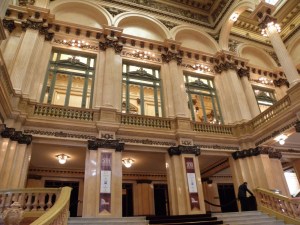 As we had time in Buenos Aires to explore the city Caitlin mentioned that she wanted to visit the theater. Caitlin had read that you could take tours of the theater and we decided to give it a shot. Our tour guide seemed to know a lot about the theater and seemed to really enjoy telling people about the theater. He said he frequently attended the Opera and told us who sat in which seats and for what reasons. For example that the presidents seat is near the stage but is not actually the best seats because of the design of the building and the acoustics. Which apparently the theater is in the top 5 for sound. The theater was built in 1908 and was the biggest Opera house in the southern hemisphere until Sydney built theirs. The theater was created by 3 different architects because of deaths and for a while people considered stopping construction because of this. The end result was that they finished it but it had a combination of styles. Because of the time period and the desire to build a decadent Opera house they brought glass in from France and marble from Italy and Portugal and tiles from London. I don’t remember all the information our guide gave us but as you can tell he had a lot to talk about.