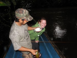 We got a chance to go fishing for piranhas and Lauren was the first one to catch one.