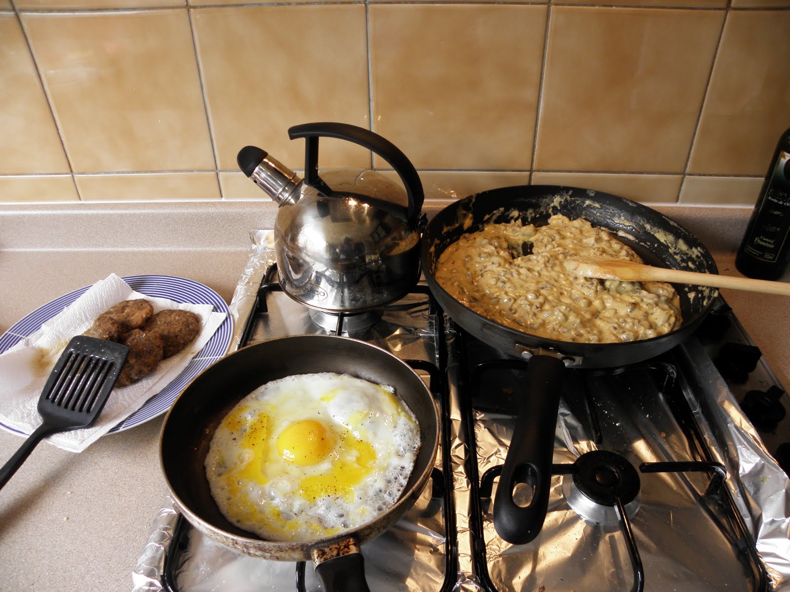 I finished the meal off by frying an egg and layering everything together for some creamy sausage goodness.
