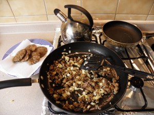 Last Sunday my absurdly elaborate meal was entirely from scratch due to the fact that all my favorite breakfast foods are just not very common here. And when I say “from scratch” I really mean it. I made my own buttermilk by combining vinegar and milk and regular ground pork became breakfast sausage with this recipe.