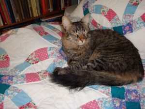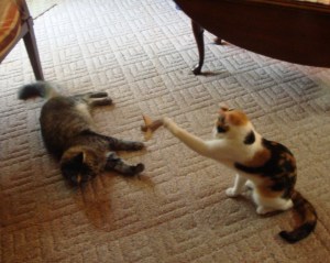 I have found lots of interesting things to watch in the yard, and love leaping from the top of the bookcases, particularly onto the bed when Olive is napping. She also makes a good pillow. The human continues to do something she refers to as “cat-proofing.” I wonder what that is.