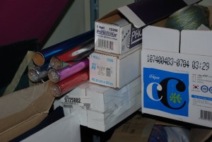 I’m getting the feeling that finding things in this art room is going to be a lot like participating in a year-long scavenger hunt. There are just so many shelves, cabinets, nooks and crannies that I can’t possibly go through everything and also find time to plan lessons, teach, and have a life. So I’ve been searching for one thing at a time. Today I wanted transparent contact paper. I knew there had to be some around here because I had found the backing in one of the scrap bins. I did eventually find rolls of it inside a box on a shelf in the corner of the storage room,