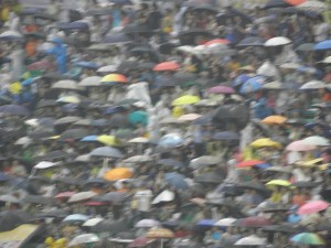 There was a brief burst of rain during the game which led everyone to pullout their umbrellas. Kind of a cool sight to see.