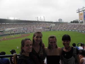The quality of the baseball, primarily the pitching was mediocre which led to a lot of hits and ton of stolen bases, thus a lot of action to see from the top of the bleachers. But I think the best part was the crowd, who all sang and banged their thunder sticks together throughout the whole game. Doing all of this in unison seemed quite a feat of planning until I was told their are cheerleaders who rile up the crowd and lead them in songs chants and so forth. Each player had a different song, so when they made a play or they came up to bat their song was blasted on the speakers and the crowd began to sing. The songs were variations of pop music such as Dancing Queen by ABBA and Baby by Beiber both of which did not strike me as songs that would pump me up before getting to the plate, but I’ll chalk this up to a cultural difference.
